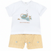 Vestilo di gioia con questo completo che profuma di estate e di giochi all'aria aperta. Immagina il suo sorriso mentre esplora il mondo, avvolto in un abbraccio di morbidezza e stile.