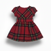 Immagina la tua piccola avvolta in questo abbraccio di calore, un vestito che profuma di feste e di ricordi felici. Il rosso intenso, ravvivato dal tartan, la trasformerà nella stella più luminosa del Natale.