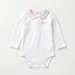 La semplicità che esalta la sua naturale bellezza. Questo body, con il suo delicato bordo a picot, è un omaggio alla purezza dell'infanzia. Un capo versatile, ideale per ogni occasione.